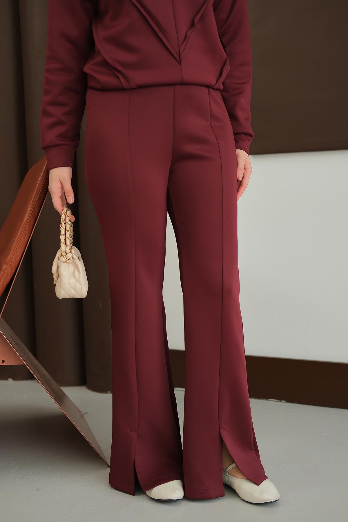 Ön Yırtmaçlı Scuba Pantolon Mürdüm