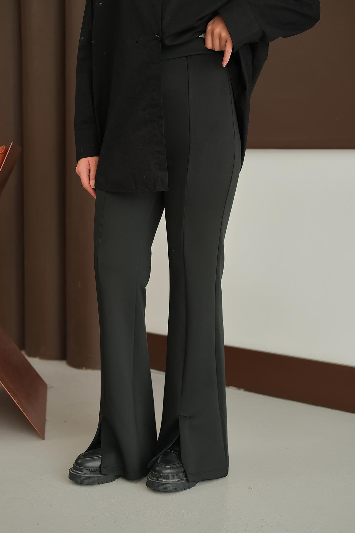 Ön Yırtmaçlı Scuba Pantolon Siyah