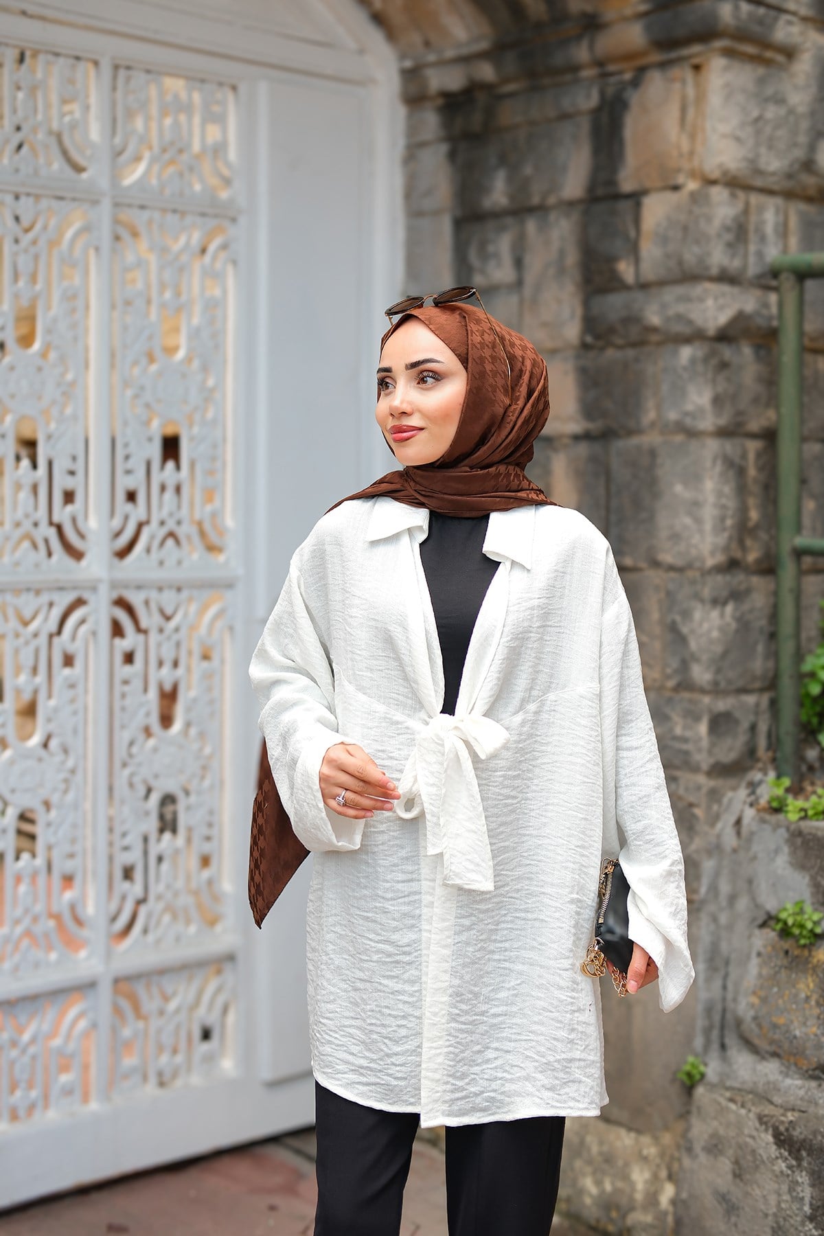 Önden Bağlamalı Ceket Ekru