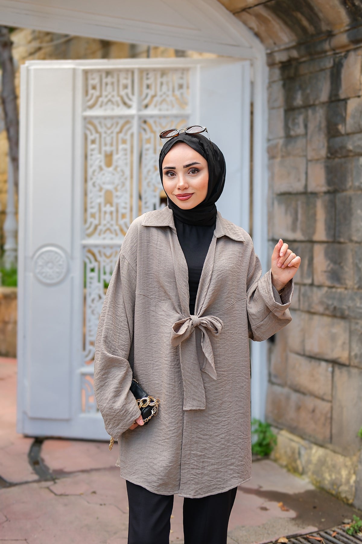 Önden Bağlamalı Ceket Gri