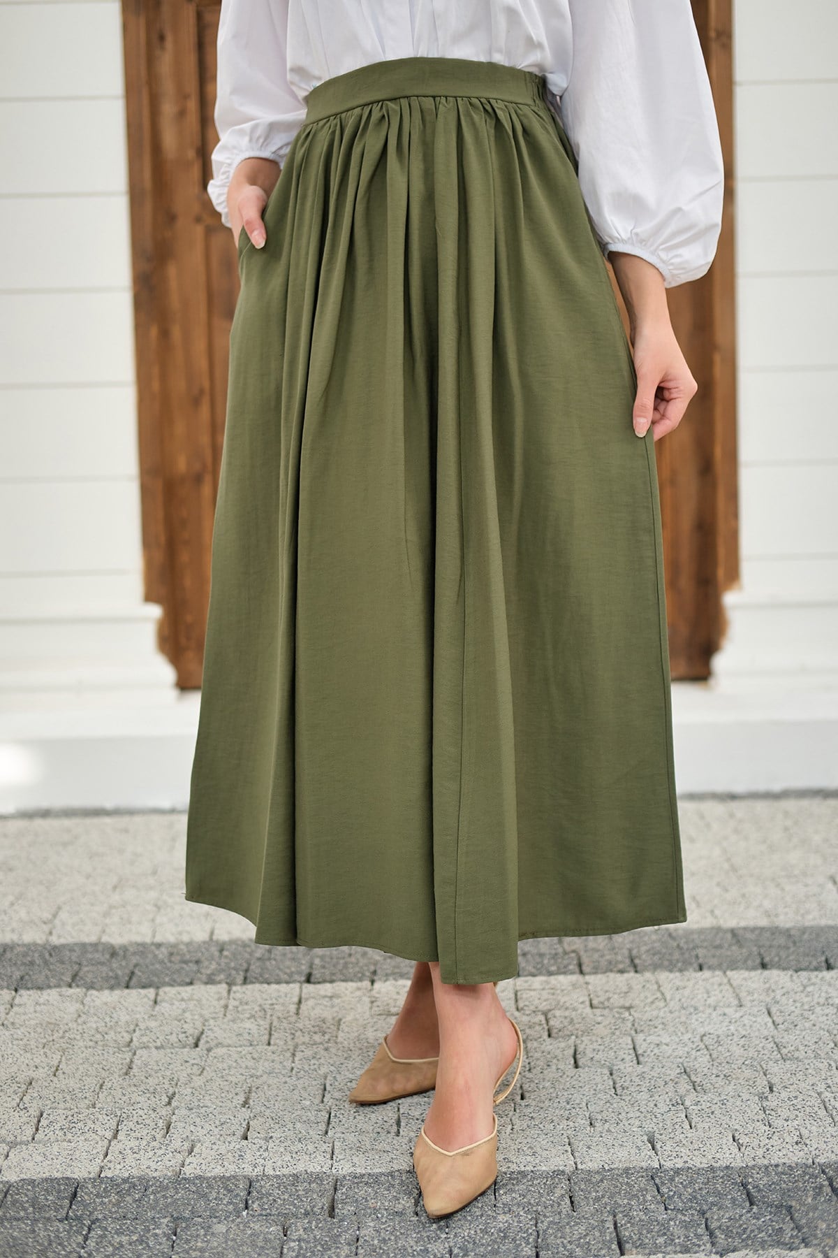 Önden Büzgülü Çift Cepli Etek Haki Yeşil