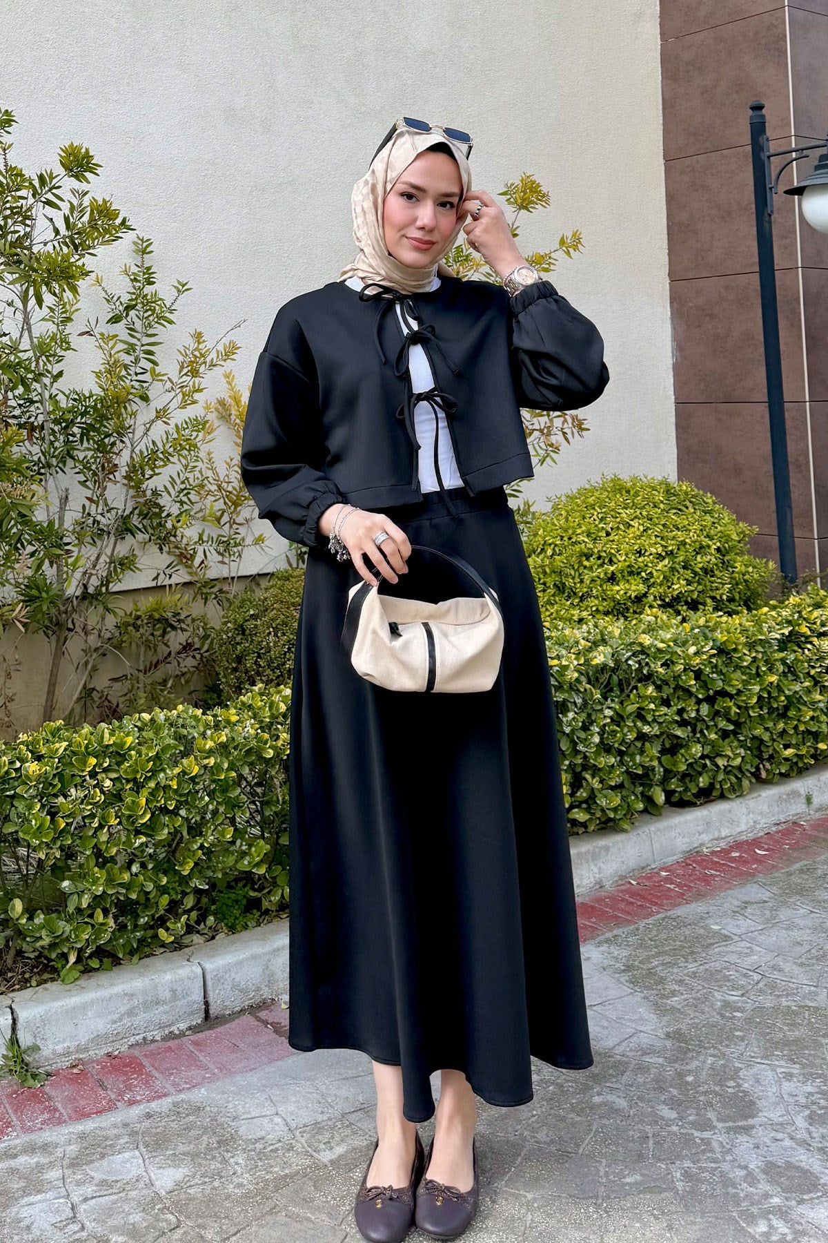 Önü Bağlamalı Etekli Takım Siyah