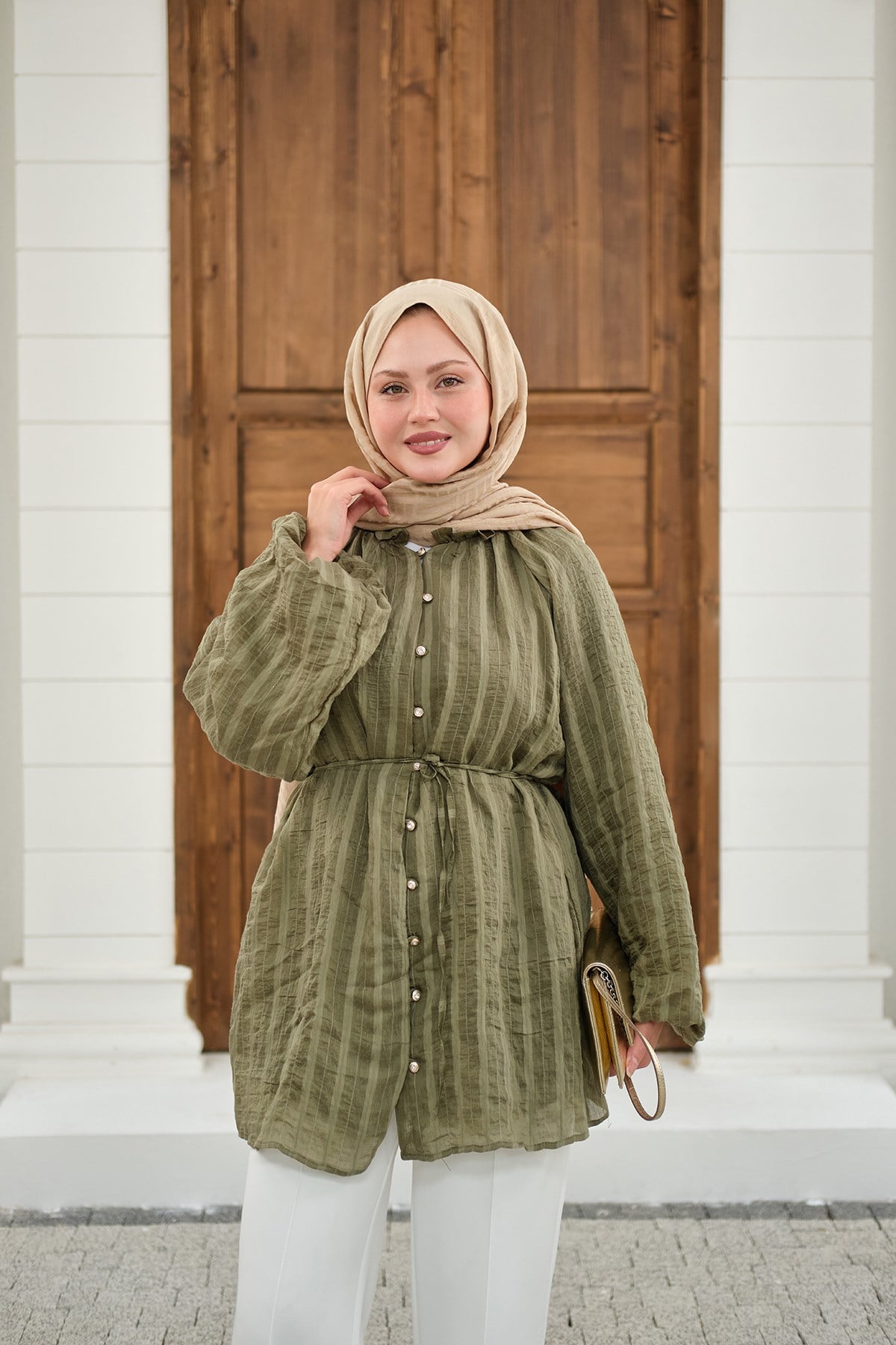 Önü Britli Simli Büzgülü Gömlek Yeşil
