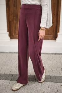 Önü Çima Detaylı Lastikli Pantolon Mürdüm