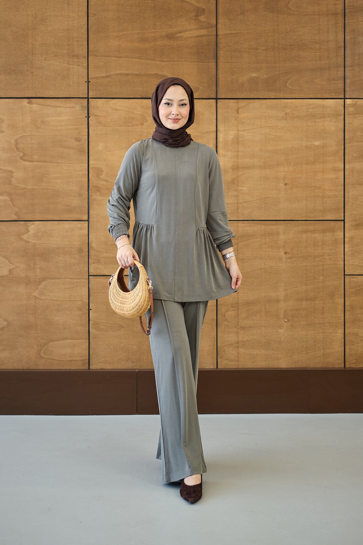Önü Çima Ve Büzgü Detay İkili Takım Küf Yeşil