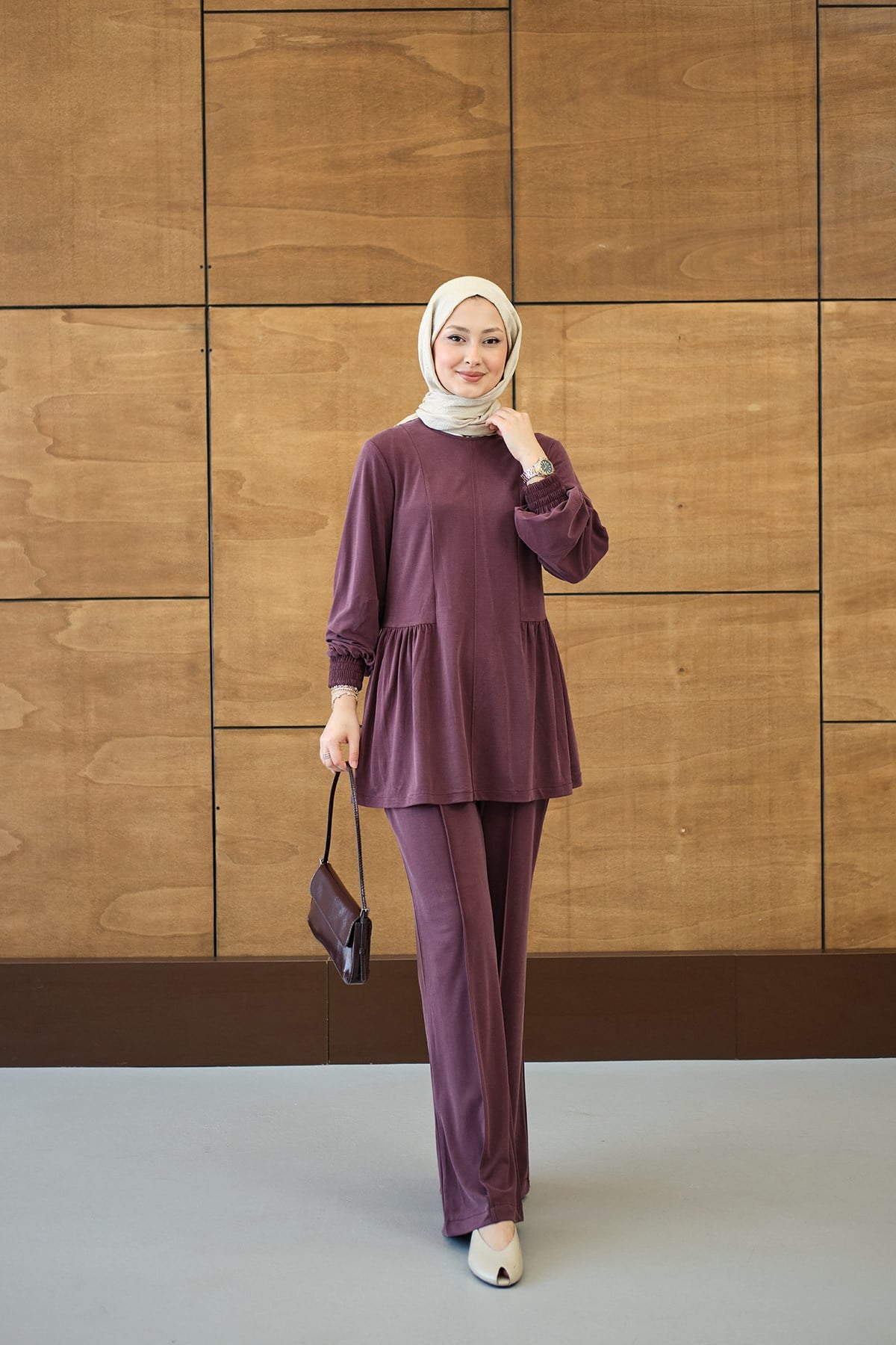 Önü Çima Ve Büzgü Detay İkili Takım Mürdüm