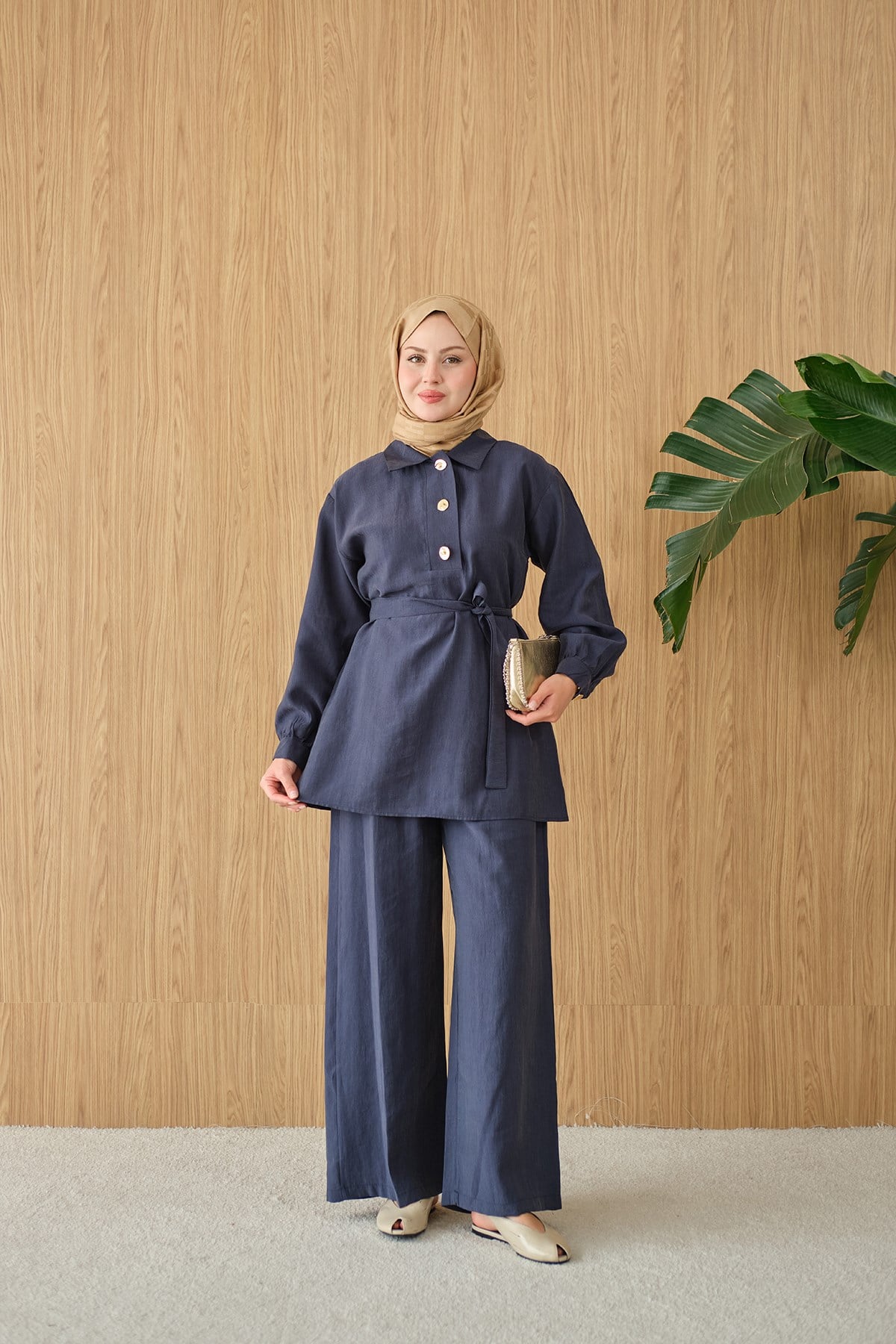 Önü Pat Düğme Detay Gömlek Yaka Takım Lacivert