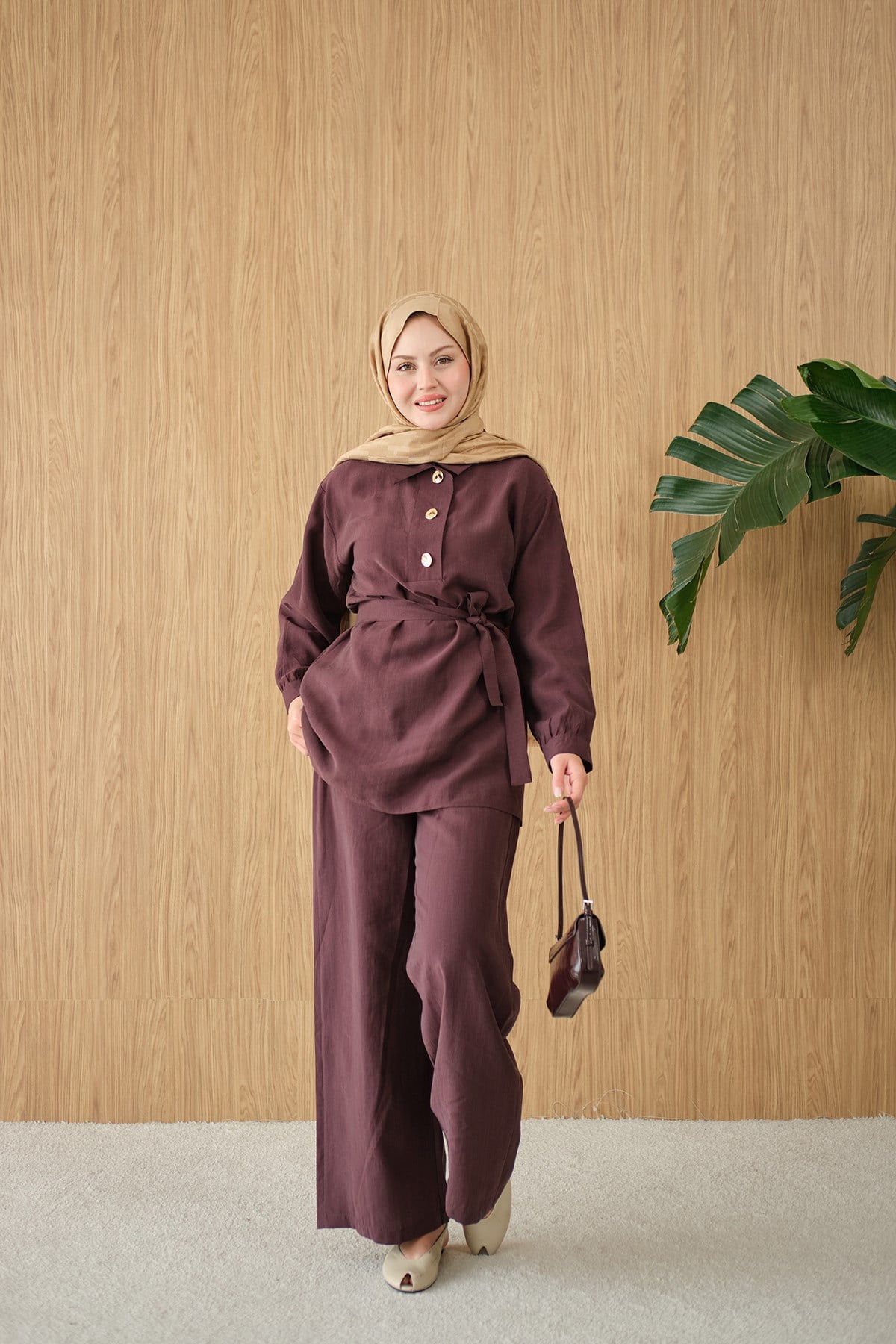 Önü Pat Düğme Detay Gömlek Yaka Takım Mürdüm