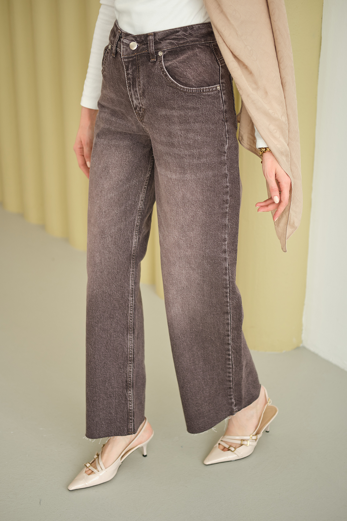 Palazzo Kot Pantolon Yıkama Kahve