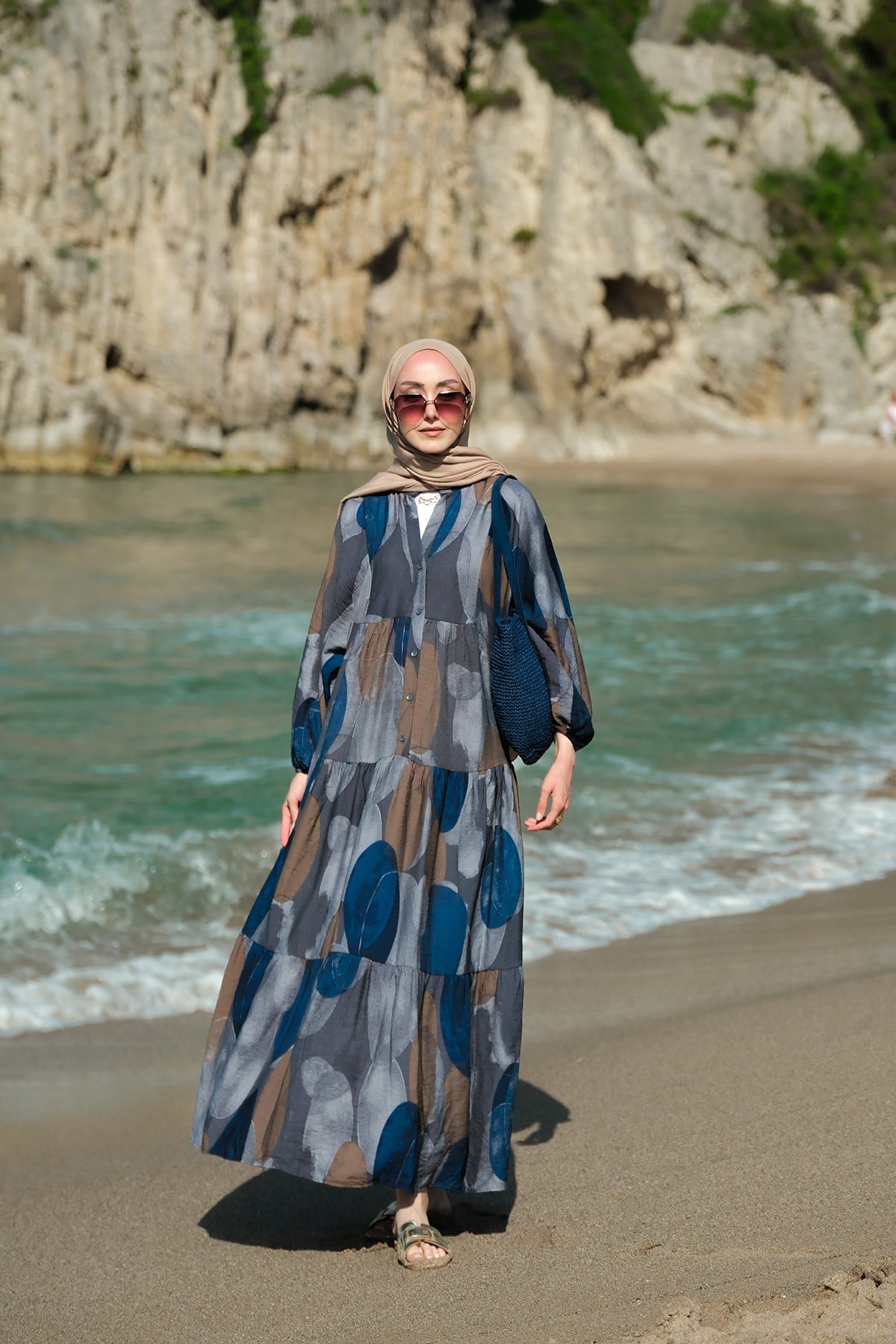 Parça Desenli Elbise Lacivert
