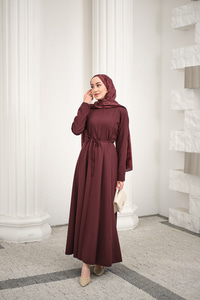 Parçalı Bel Bağlamalı Elbise Mürdüm