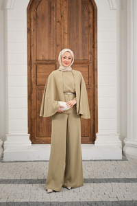 Pelerin Kol Arkası Fermuarlı Kemer Detay Takım Küf Yeşil