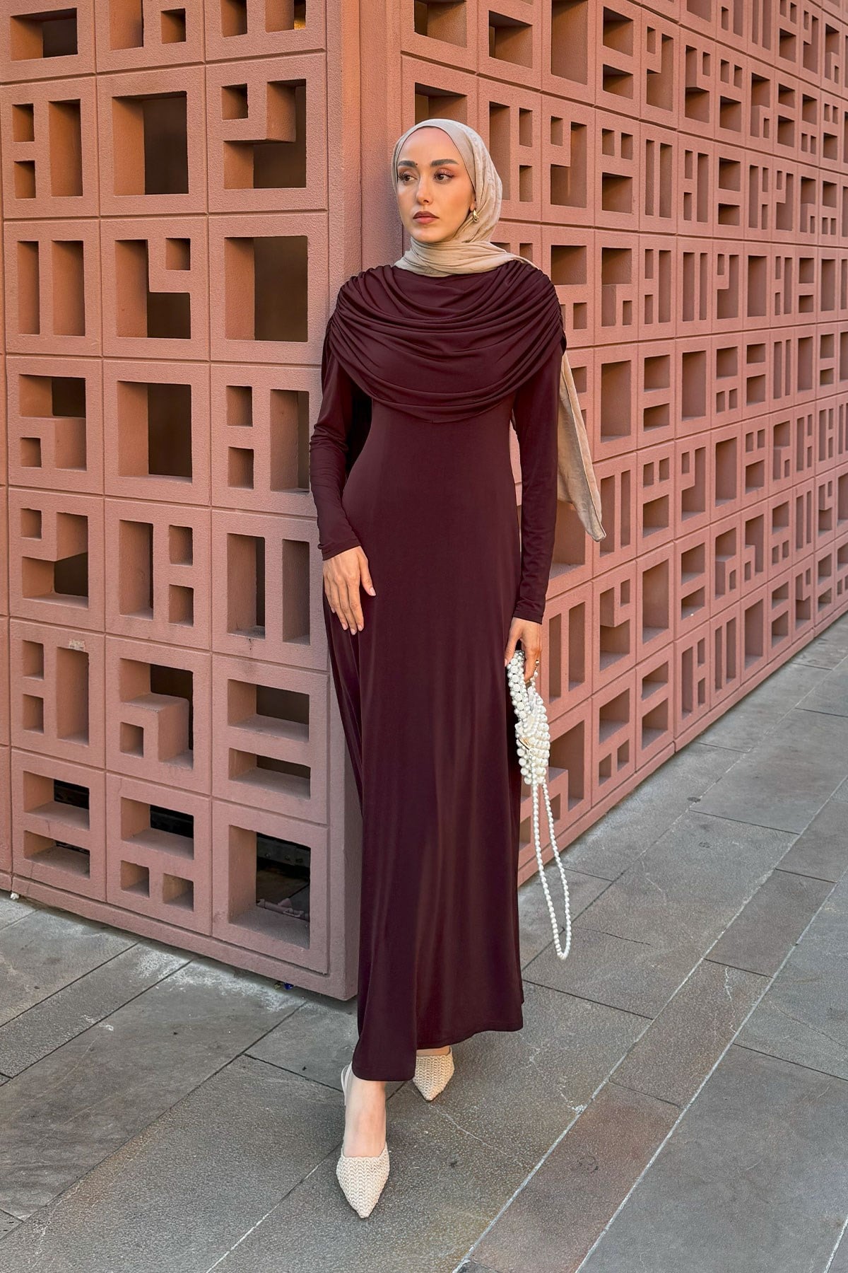 Pelerinli Julia Elbise Kahverengi