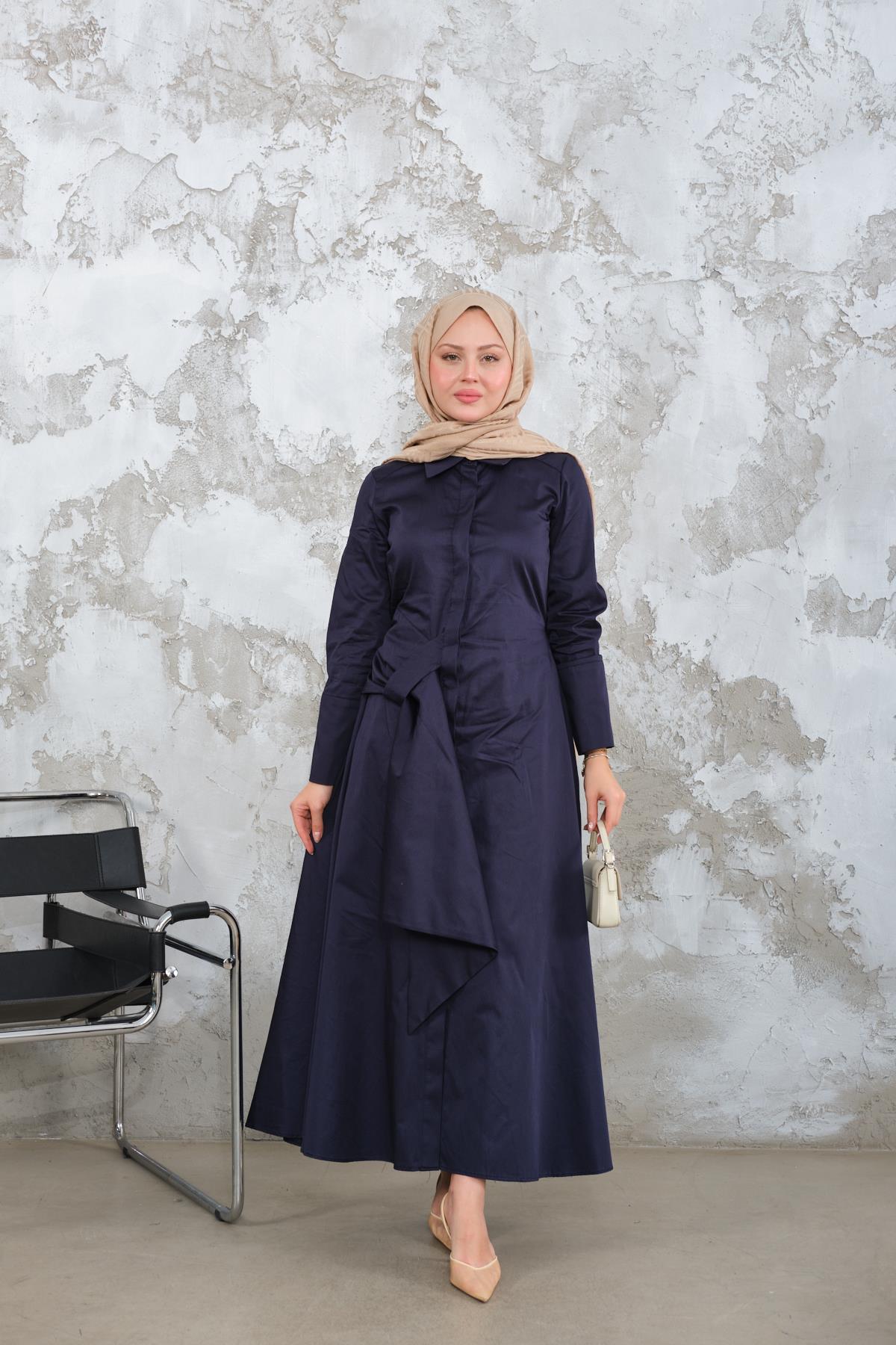 Pile Detay Elbise Lacivert