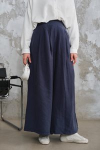 Pileli Bol Paça Pantolon Lacivert
