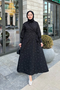 Puantiyeli Yandan Bağlamalı Elbise Siyah