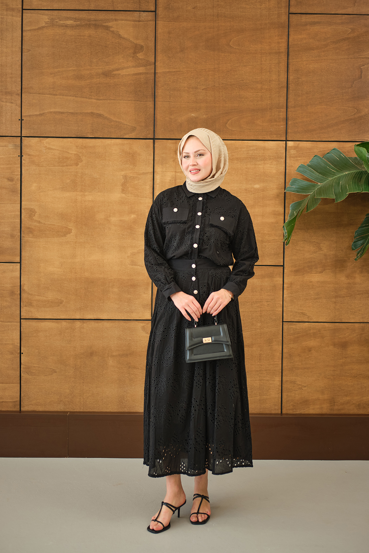 Püskül Detay İkili Takım Siyah