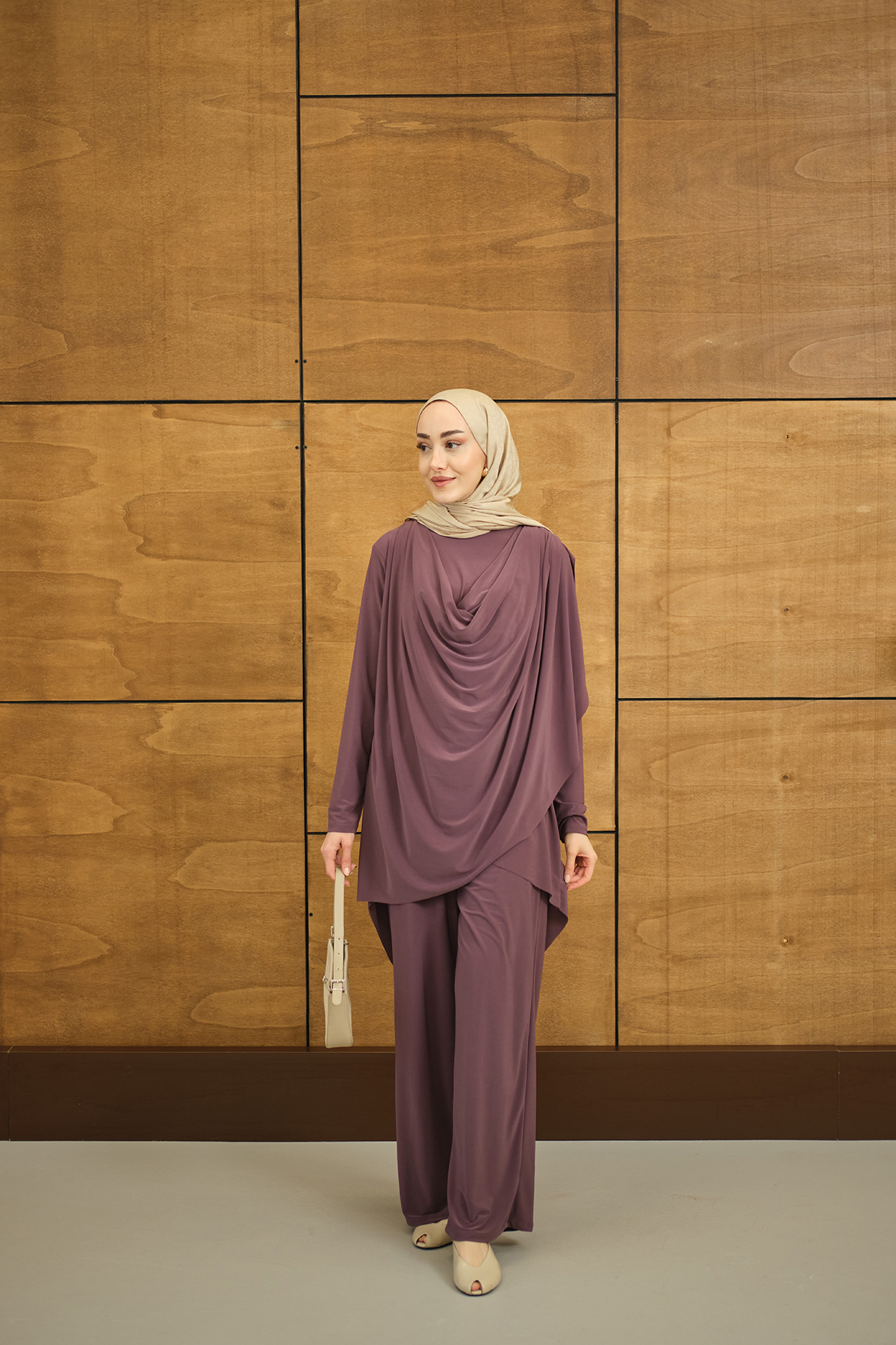 Regular Sıfır Yaka Arka Kesik Detay Takım Gül Kurusu