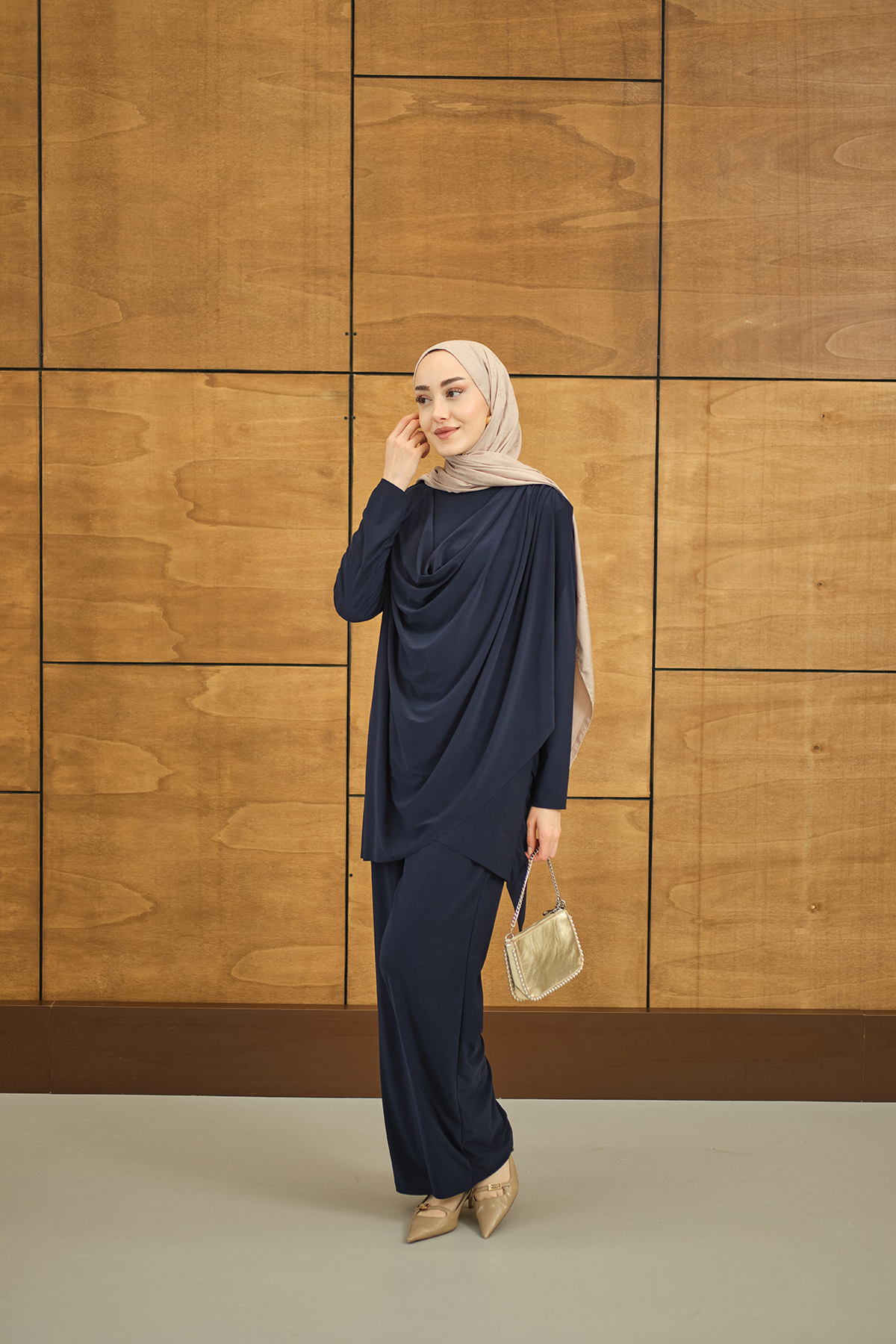 Regular Sıfır Yaka Arka Kesik Detay Takım Lacivert
