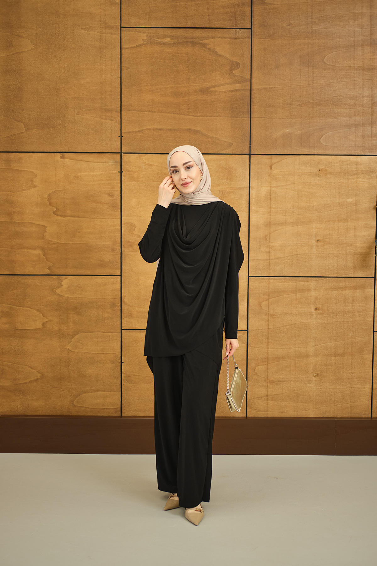 Regular Sıfır Yaka Arka Kesik Detay Takım Siyah