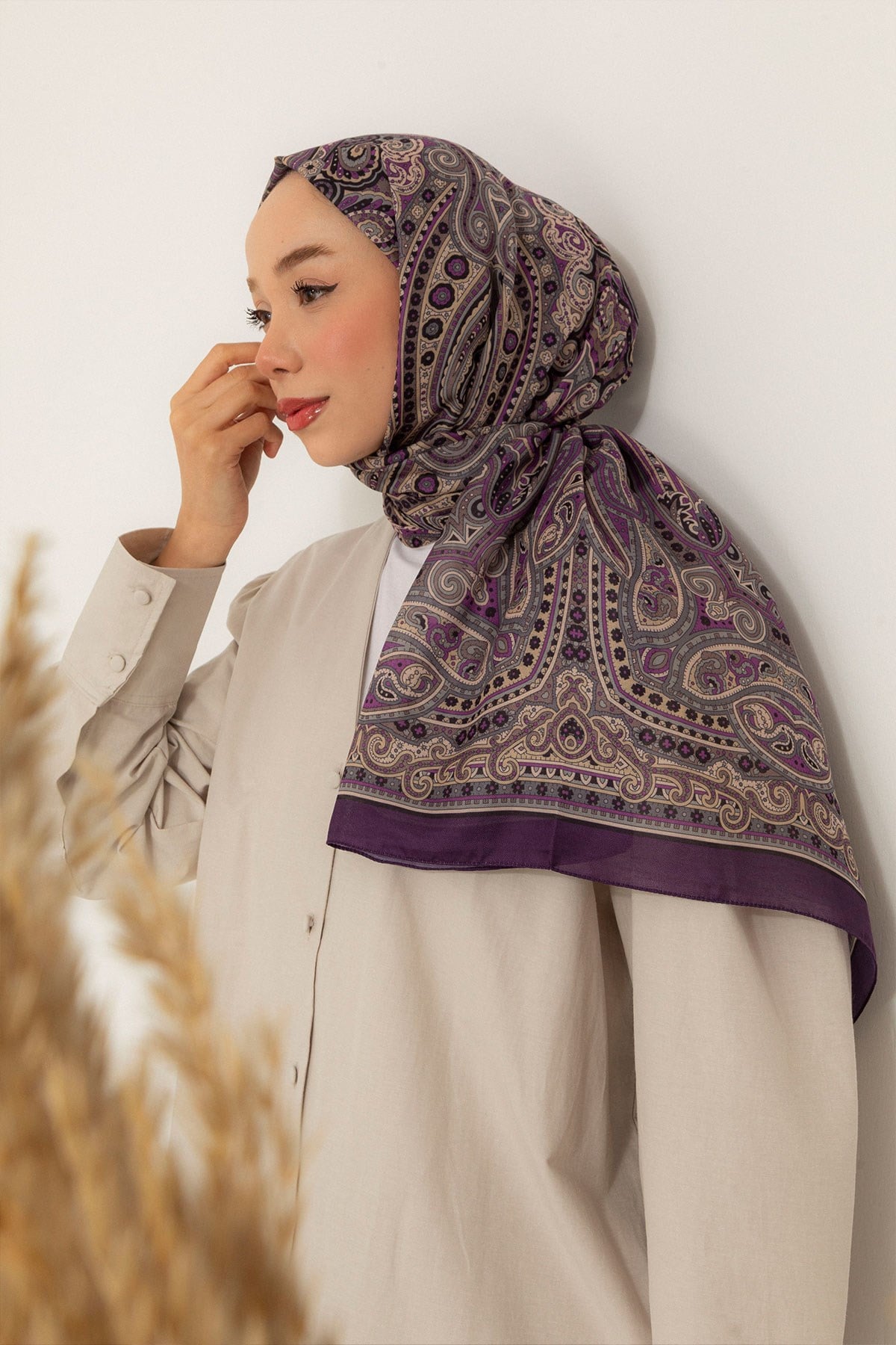 Retro Desen Soft Şal Mor