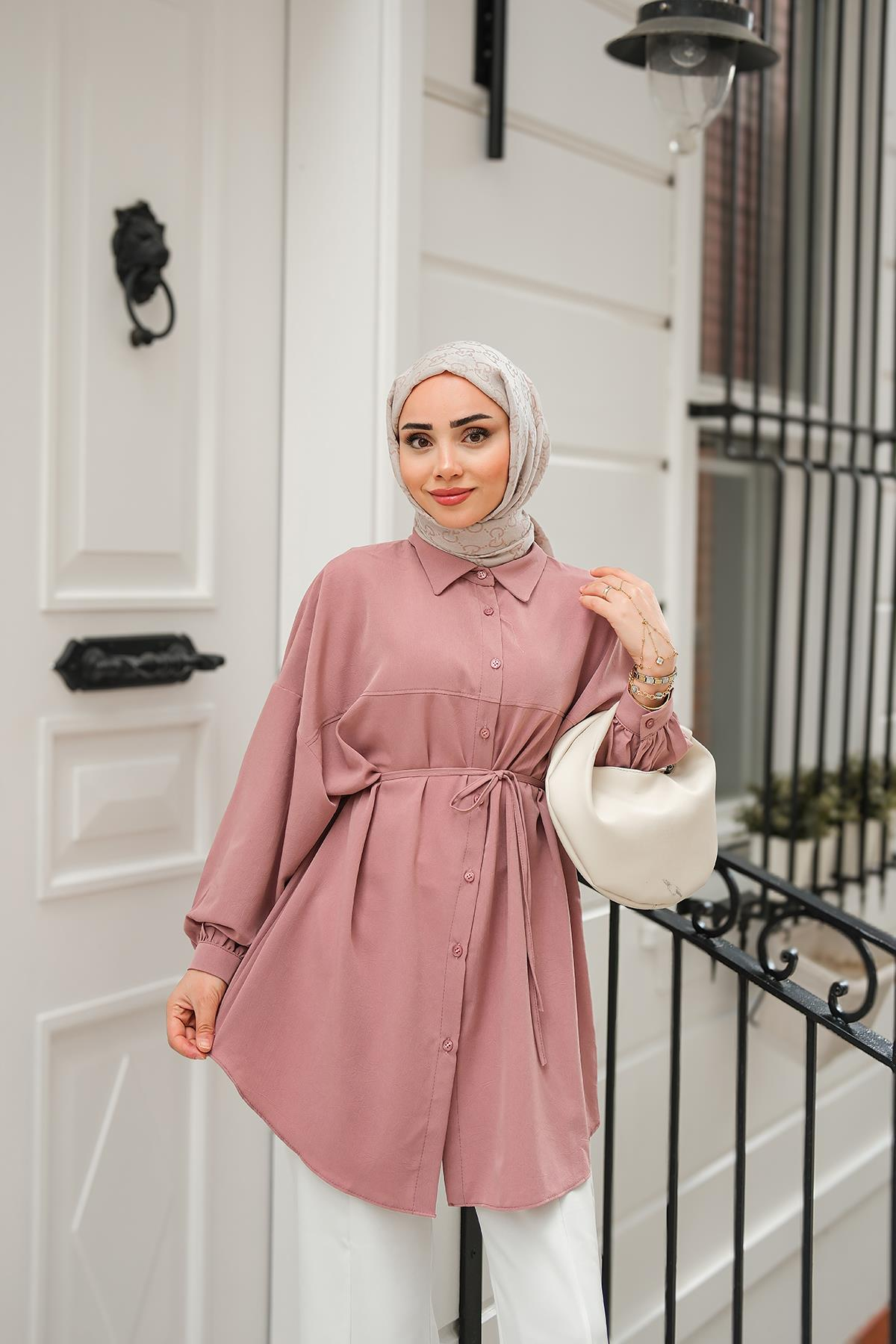 Robadan Dikişli Gömlek Gül Kurusu