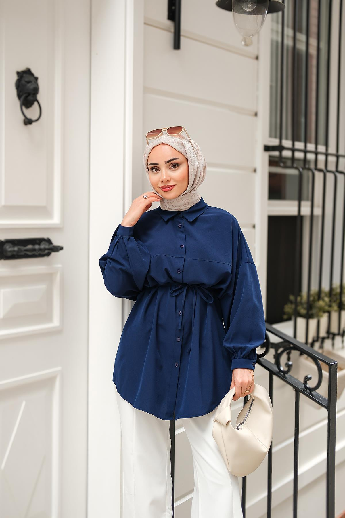 Editör Notu: Robadan Dikişli Gömlek Lacivert, Belden bağlamalı detayıyla vücuda zarif bir form kazandıran bu gömlek, günlük kombinlerinize şıklık katmak için ideal. Hafif yapısıyla konforlu bir kullanım sunar.