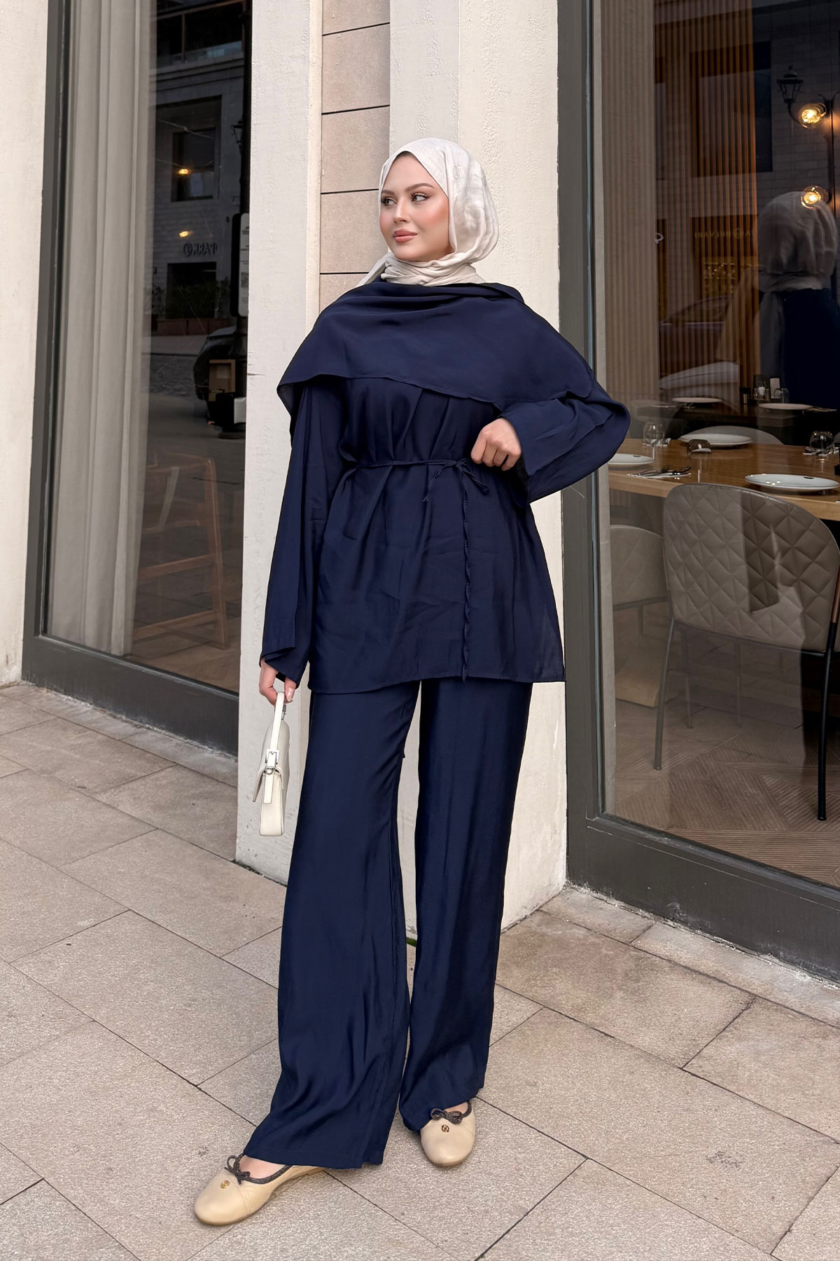 Şal Detay Bel Bağlamalı Takım Lacivert
