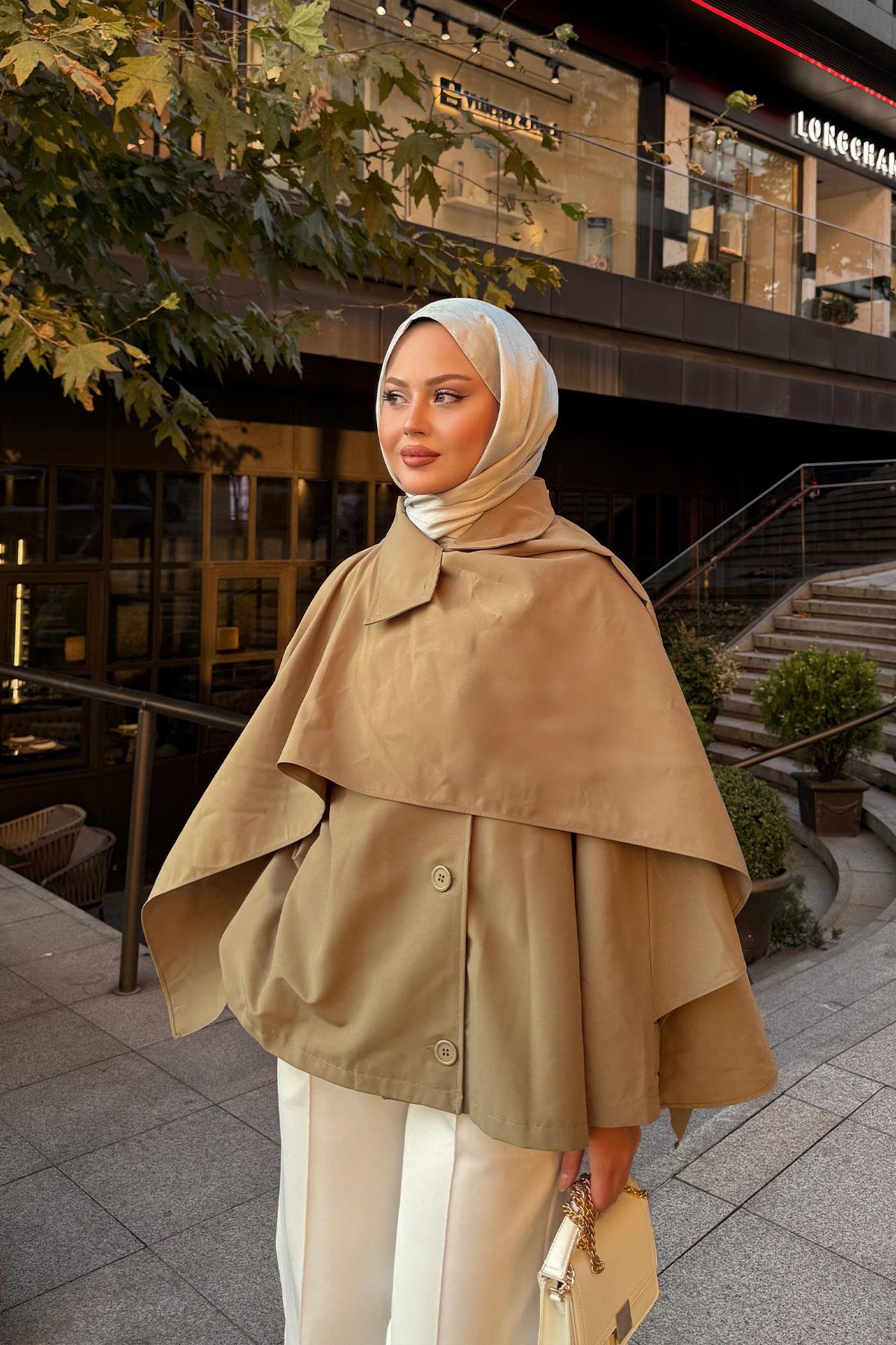 Şal Detay Kısa Trenç Haki Yeşil