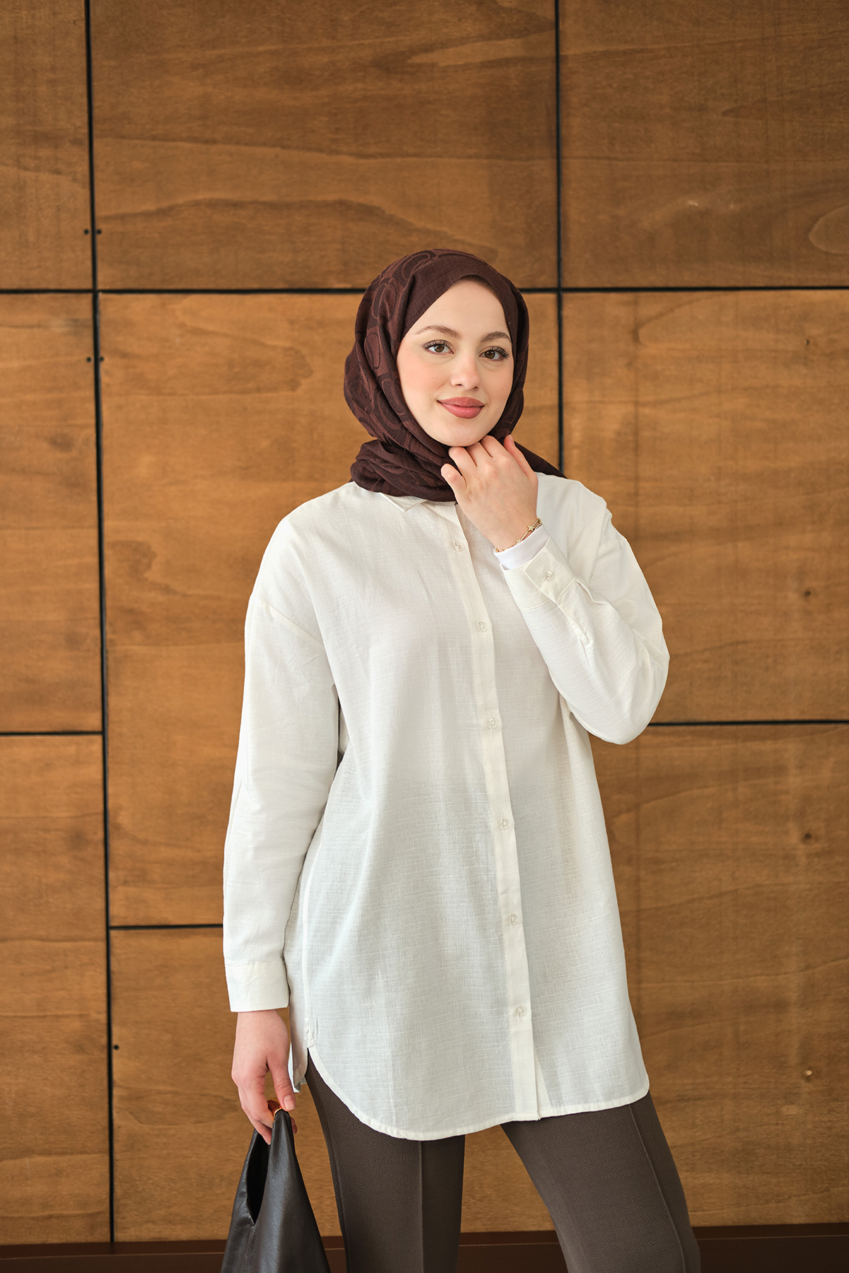Şeffaf Düğme Detaylı Basic Gömlek Beyaz
