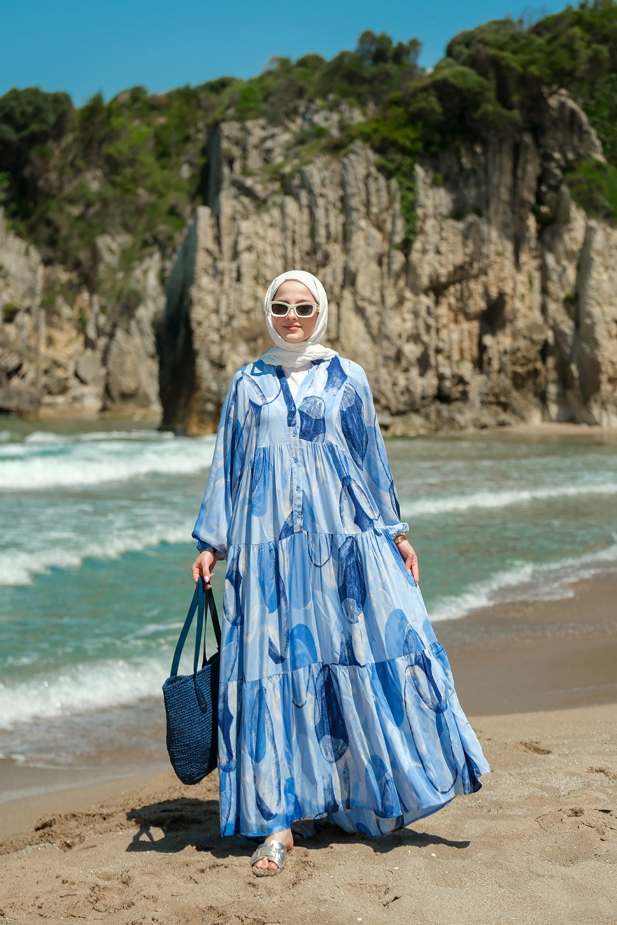 Şekil Desenli Elbise Mavi