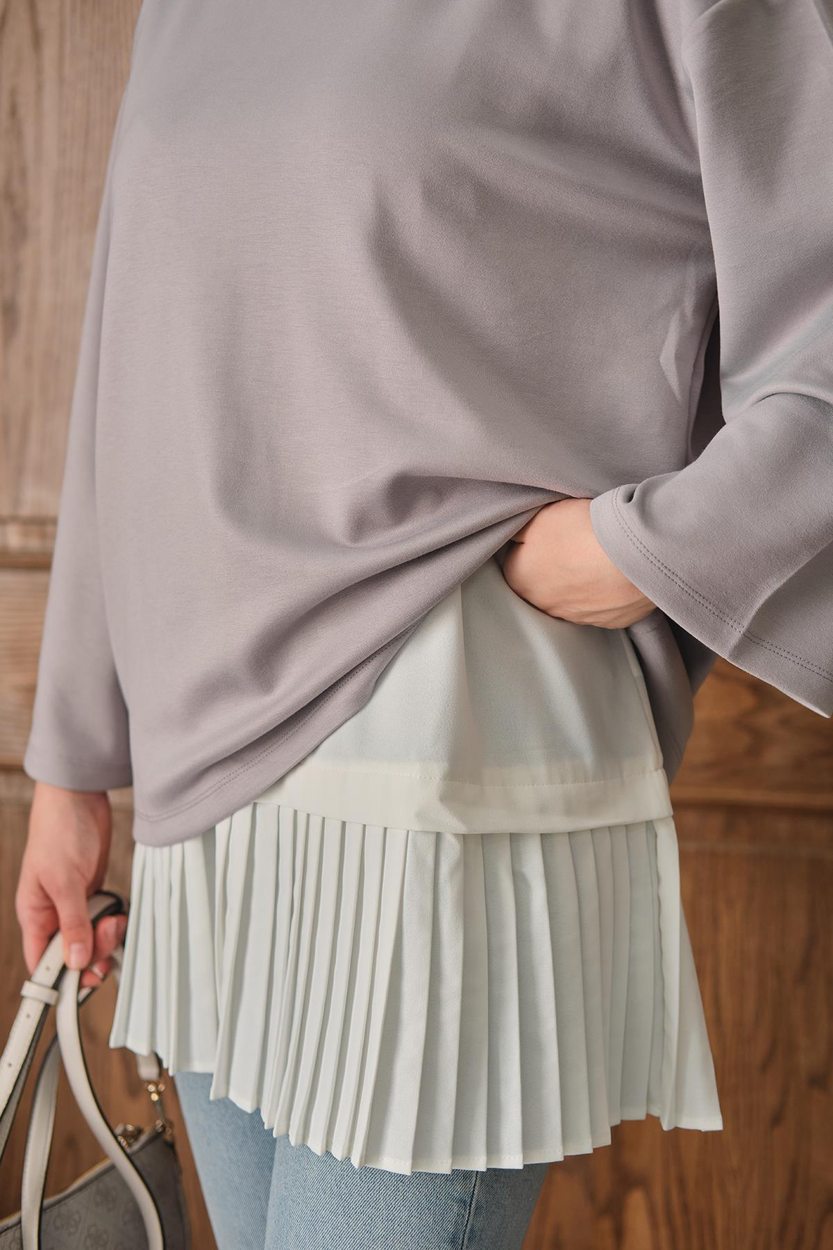 Sıfır Kol Pileli İçlik Beyaz