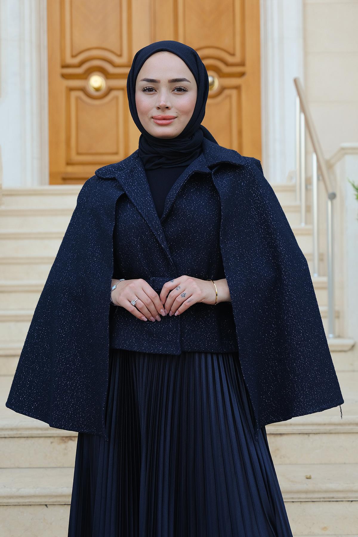 Editör Notu: Sim Detay Pelerinli Ceket, yüksek kaliteli tuvid kumaşıyla hem şık hem de zarif bir görünüm sunuyor. Özgün pelerin detayı, ceketinizin stiline modern bir hava katarken, sim detayları ile dikkat çekici bir zarafet sağlıyor.Bu ceket, hem özel davetlerde hem de günlük kullanımlarda şıklığınızı artırmak için mükemmel bir tercihtir.