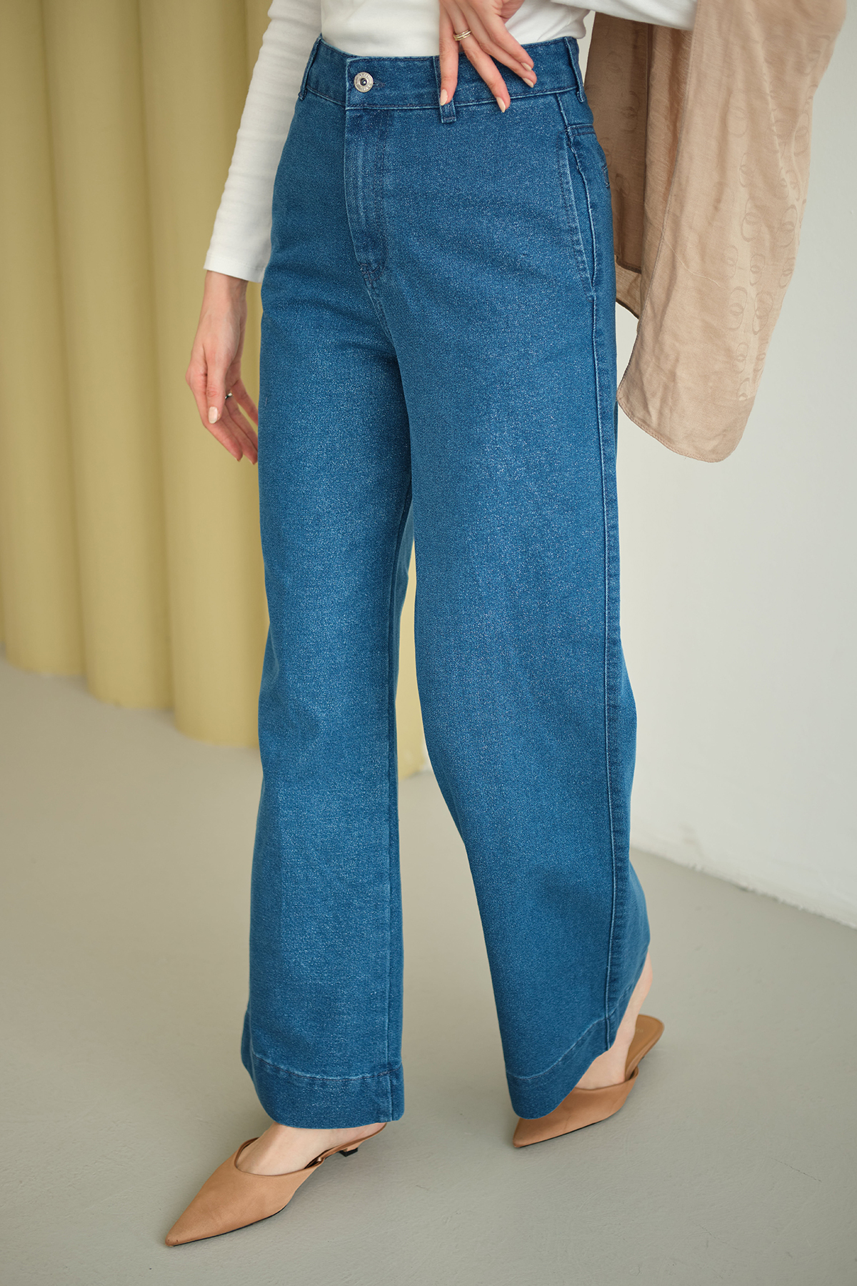 Sim Detay Yüksek Bel Pantolon Mavi