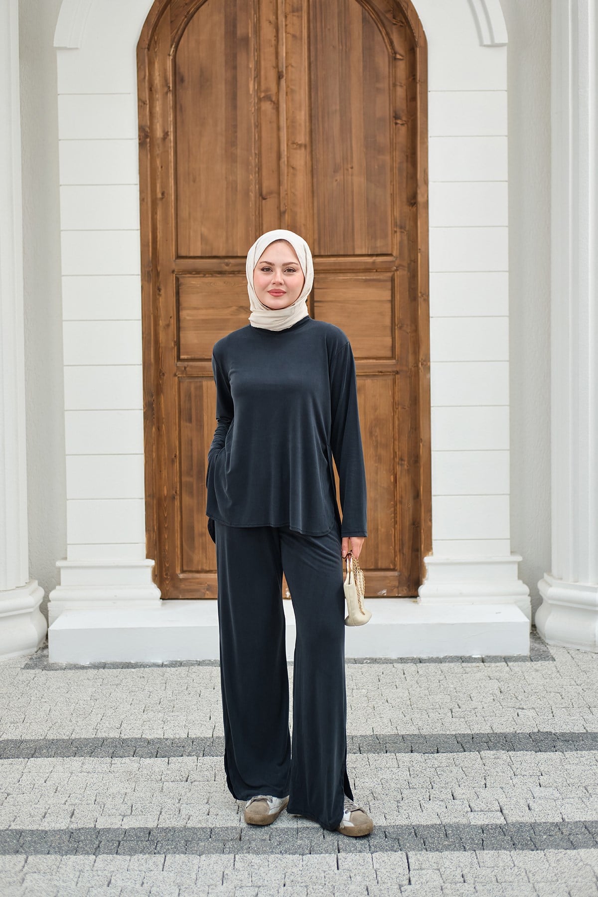 Sırt Dikiş Detay Beli Lastikli Takım Antrasit