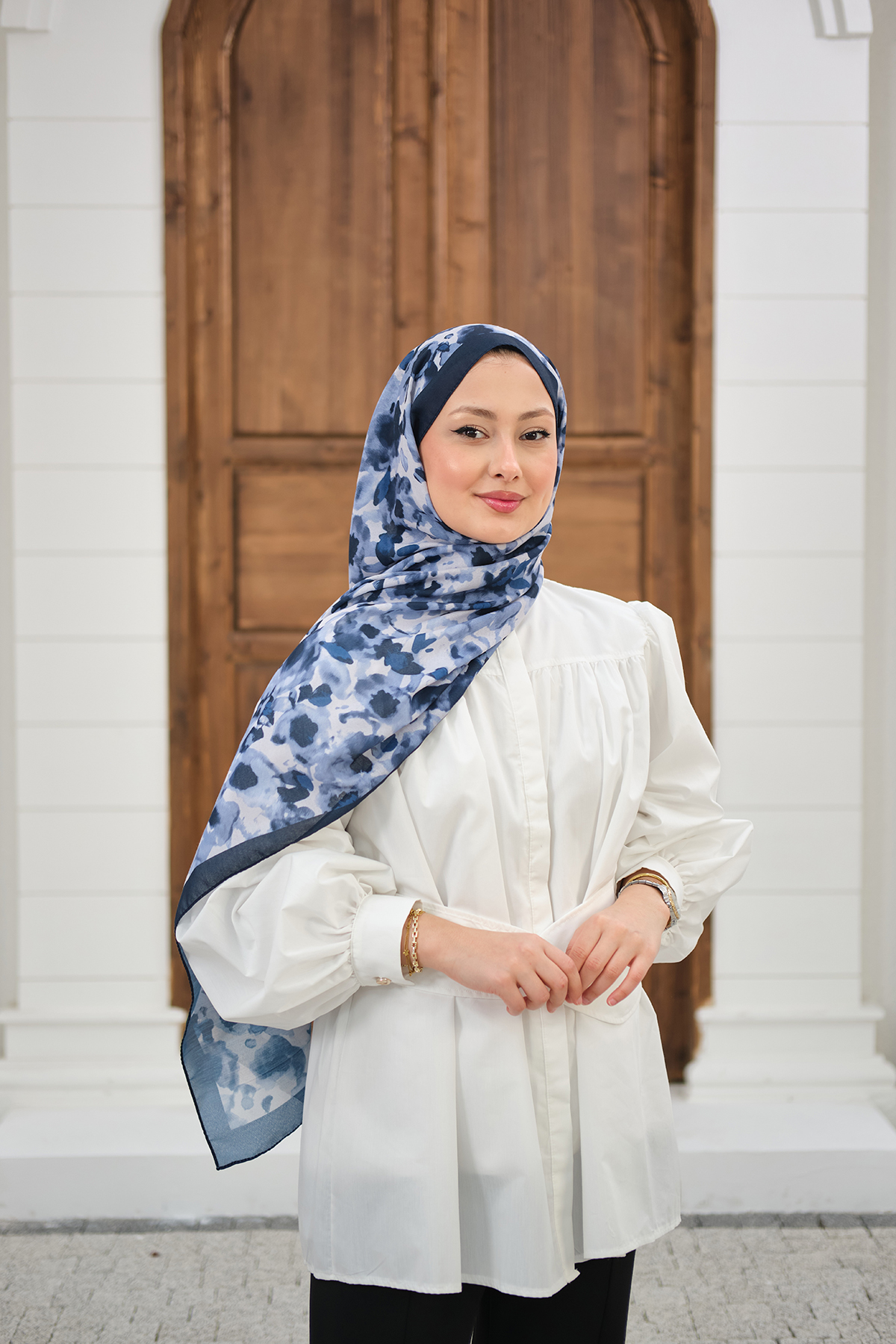 Sisli Gül Desen Şal Lacivert