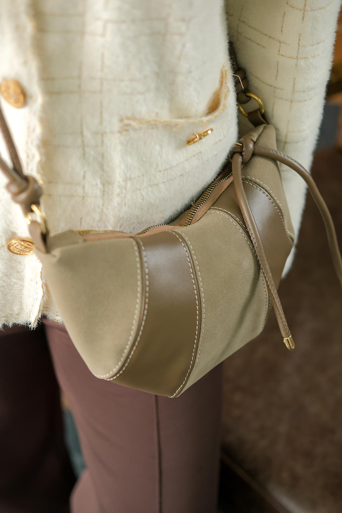 Süet Detay Çanta Vizon