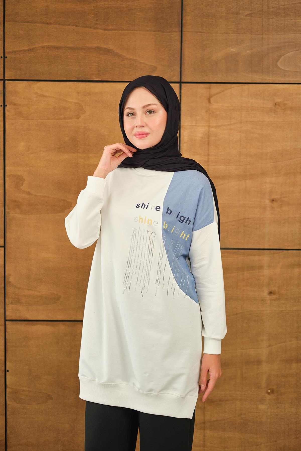 Taş Detay Garnili Tunik Beyaz