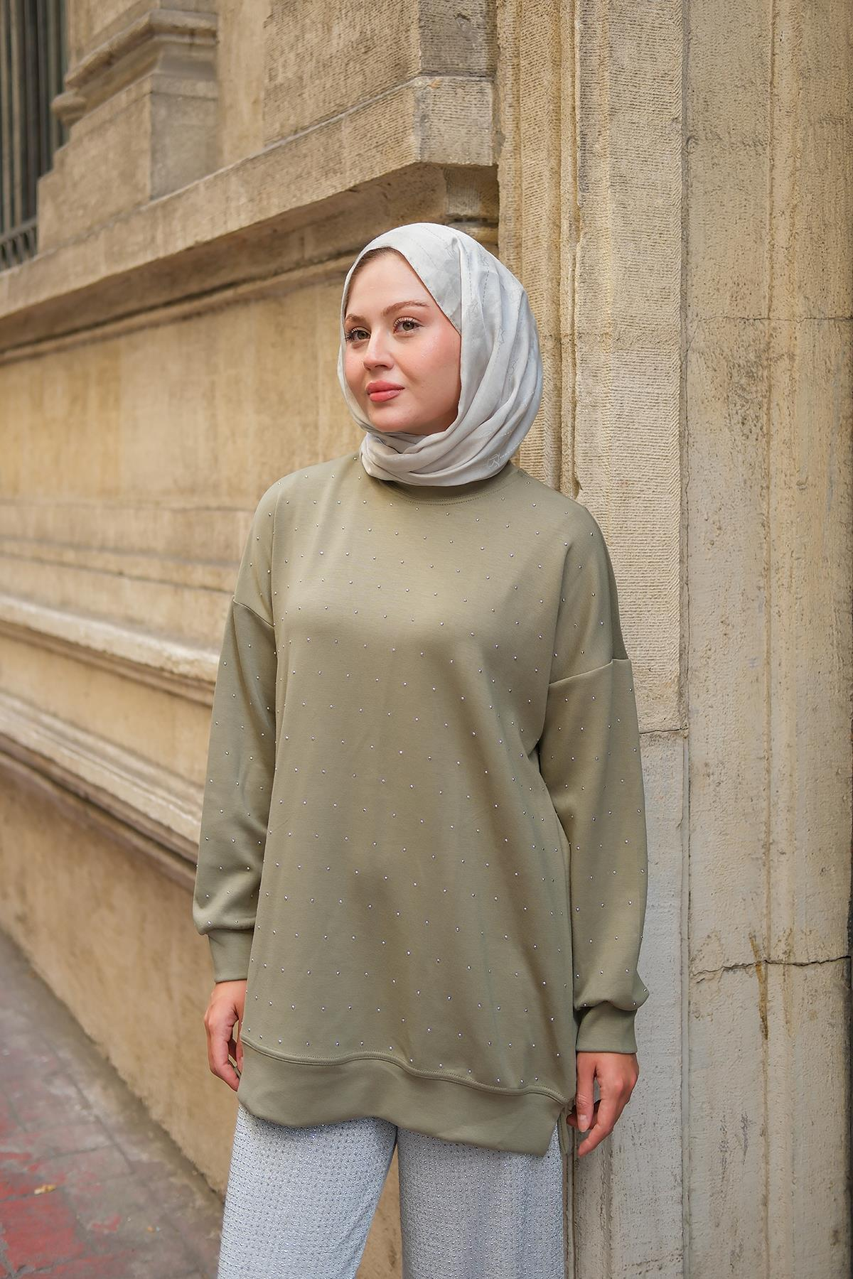 Taş Detay Tunik Fıstık Yeşil