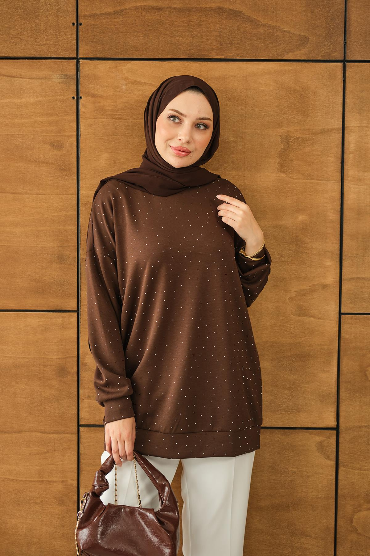 Taş Detay Tunik Kahverengi