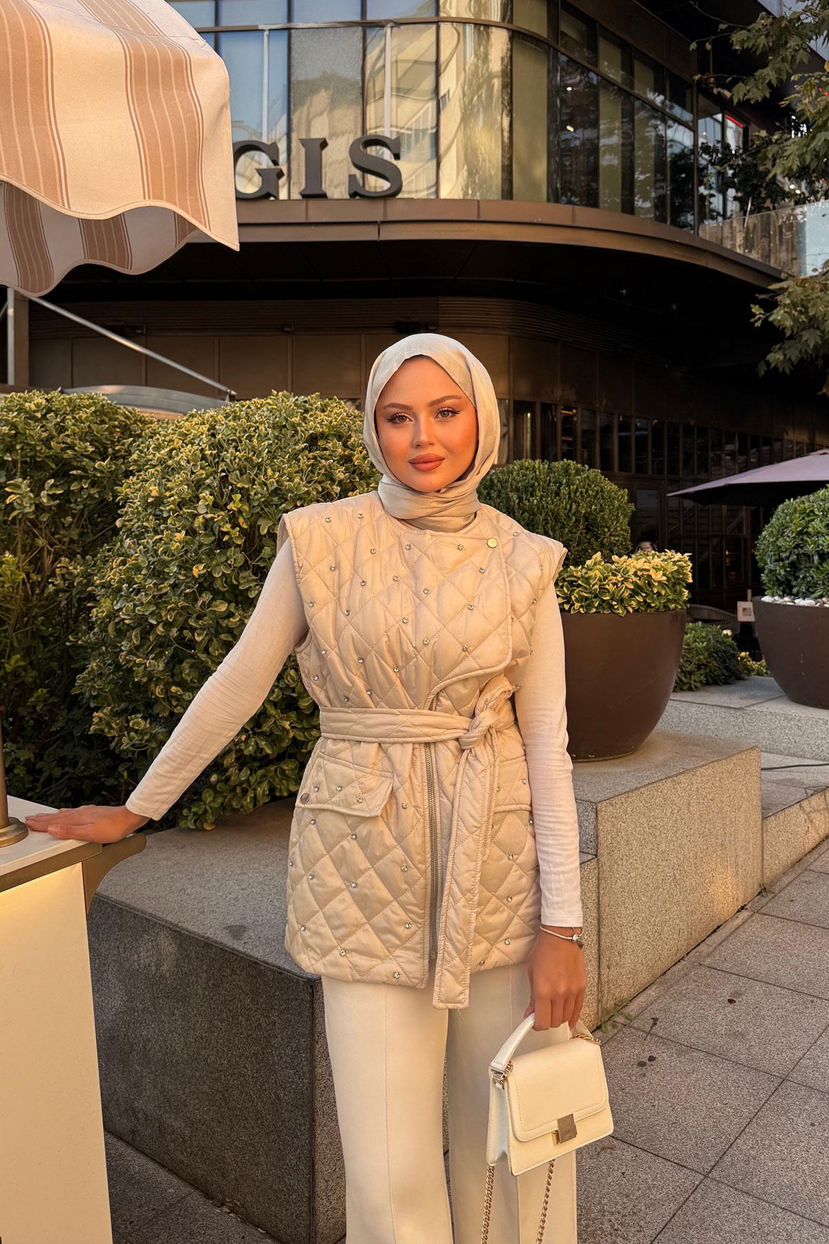Editör Notu:Taş işleme detaylı kapitone tasarım yelek, şıklığı ve zarafeti bir arada sunan modern bir dış giyim parçasıdır. Hem şıklığınızı artıracak hem de soğuk havalarda rahatça kullanabileceğiniz bu yelek, kapitone kumaşı ile vücudu rahat  ve sıcak tutar. Üzerindeki taş işleme detayları ise tasarıma ışıltı katarak, gündelik veya özel günlerde göz alıcı bir şıklık sağlar.