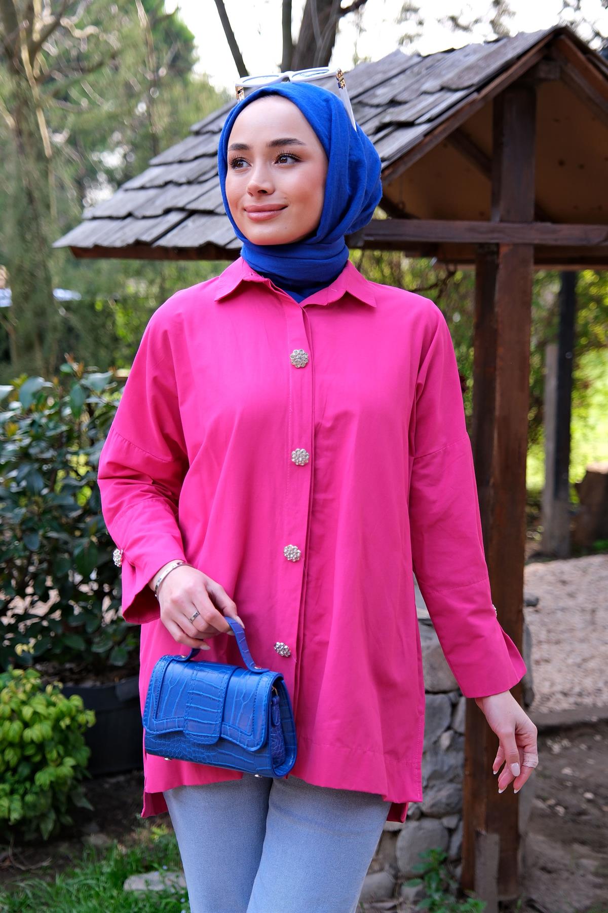 TAS DUGMELI DETAYLI GOMLEK FUSYA