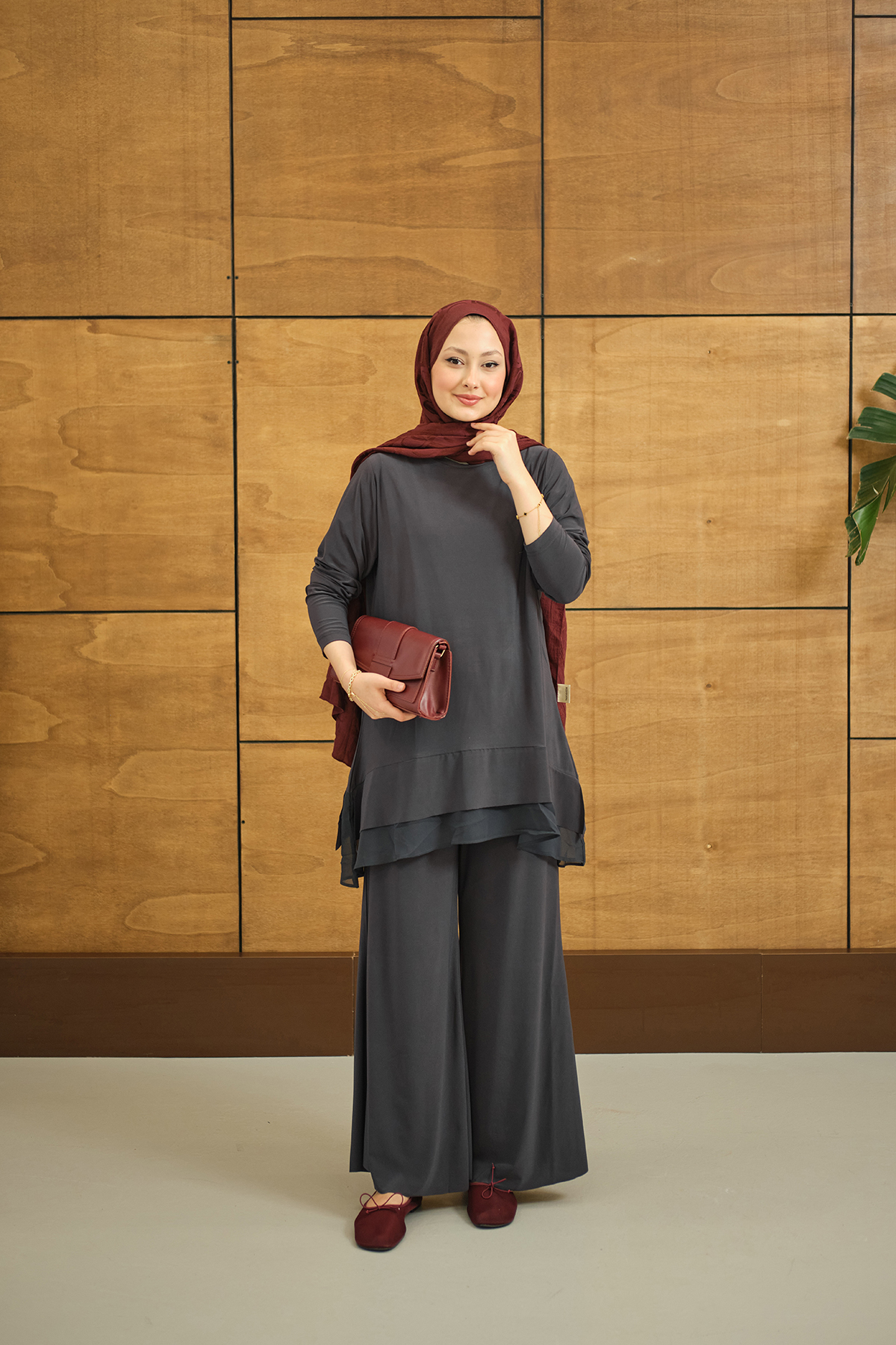 Tül Detay İkili Takım Antrasit