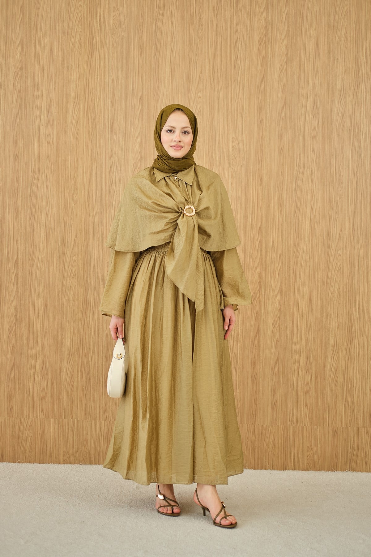 Üç Parçalı Tül Kumaş Gold Broş Detay Takım Yağ Yeşil
