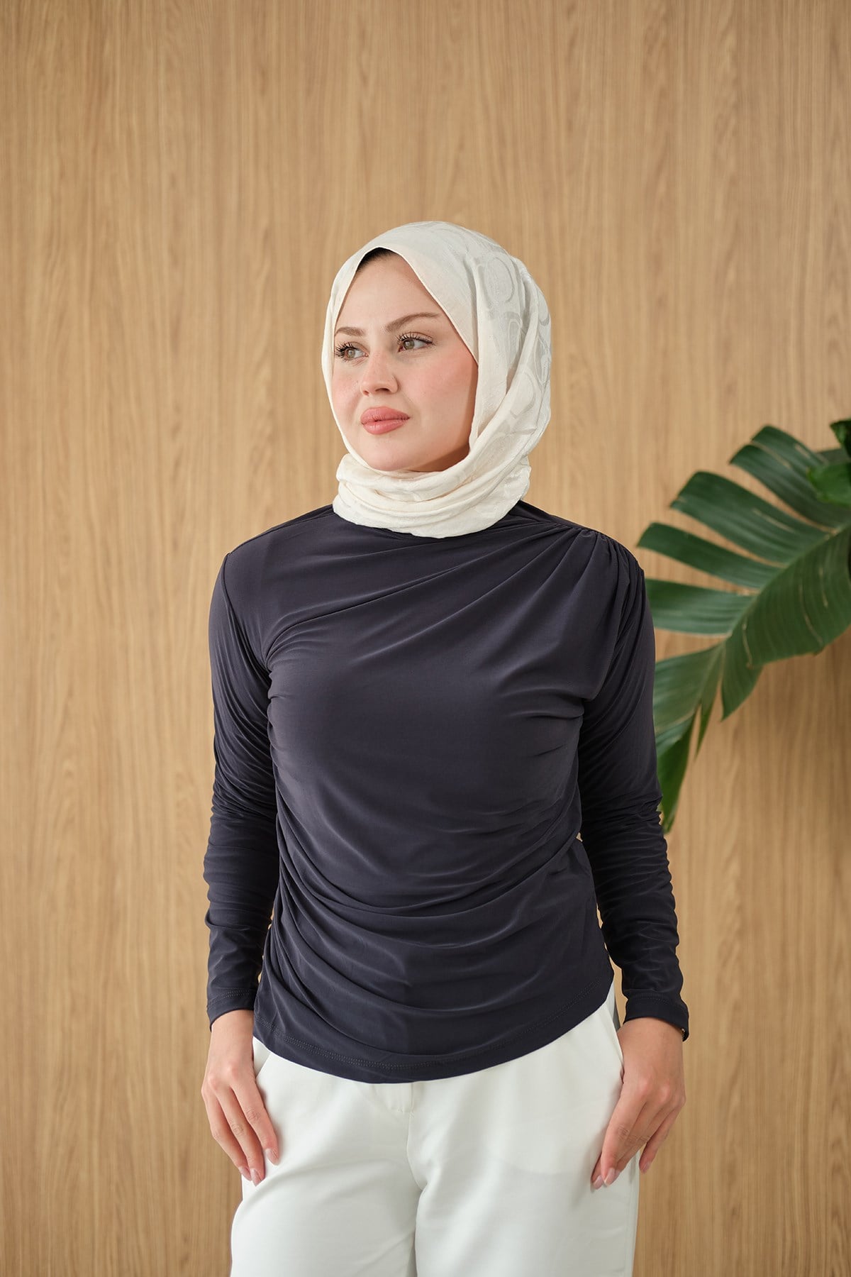Uzun Kollu Büzgü Detay Bluz Antrasit