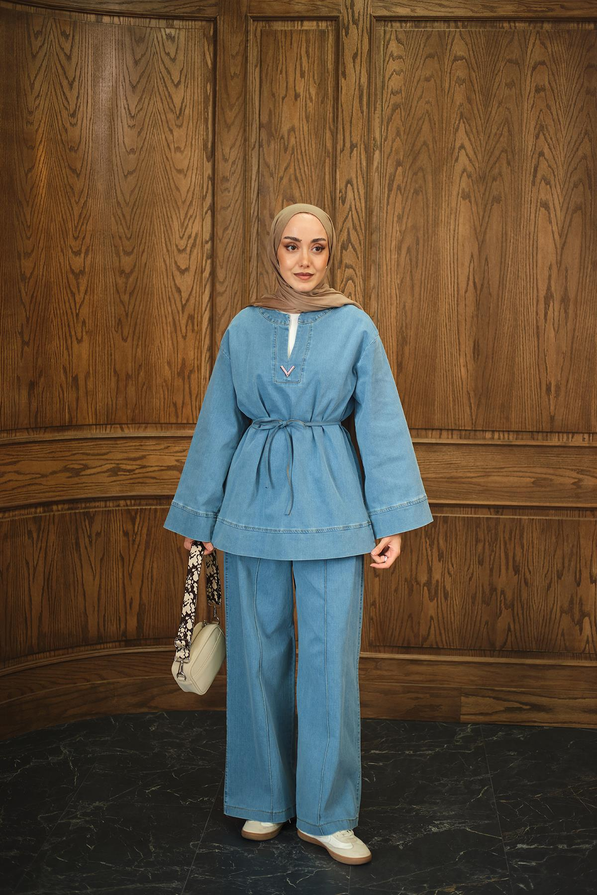 V Broş Detay Takım Açık Mavi