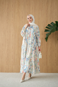 Vintage Çiçek Desen Elbise Mavi