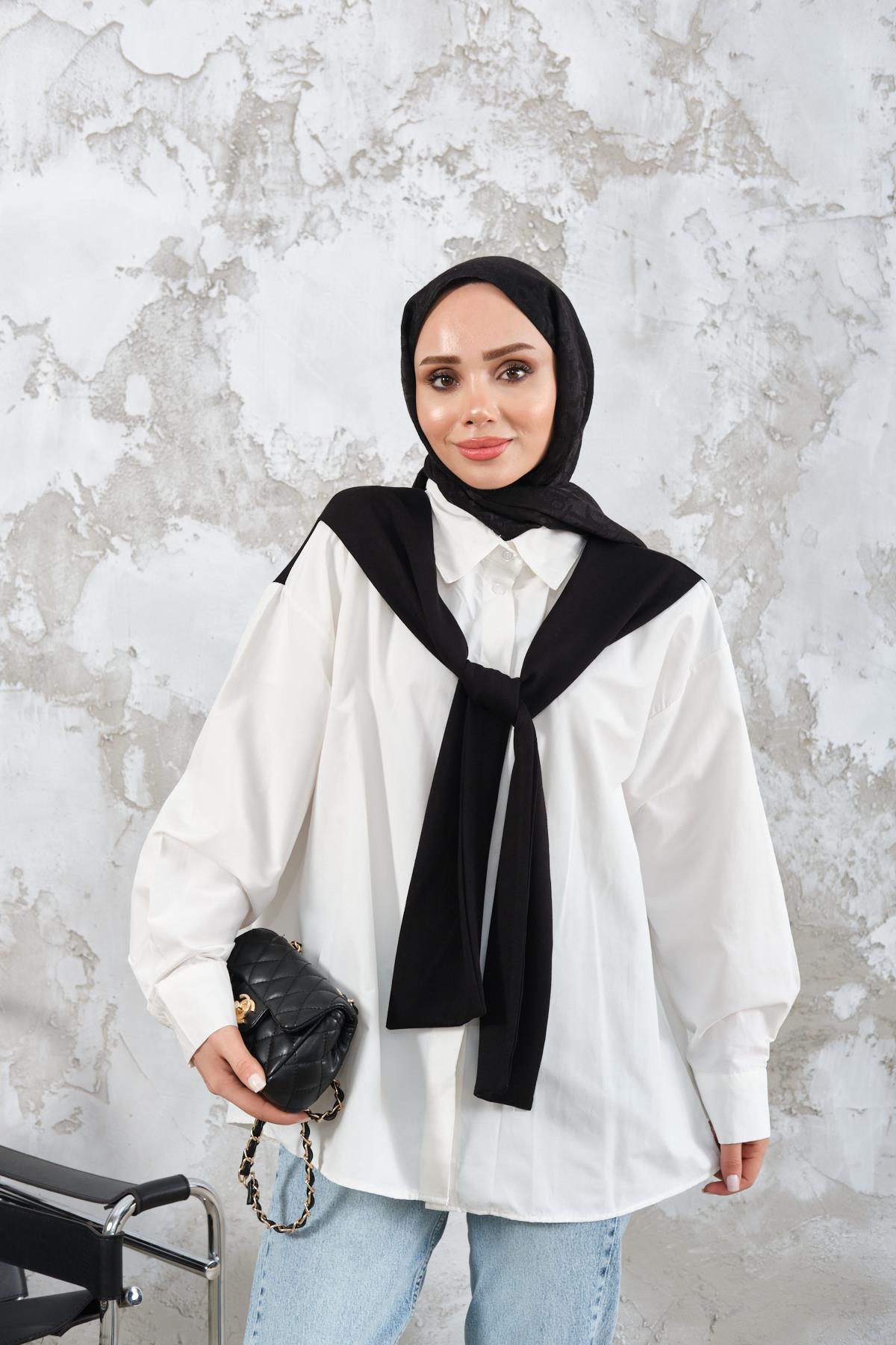 Yaka Bağlamalı Çift Renk Gömlek Siyah