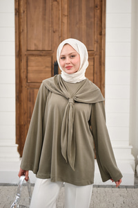 Yaka Pelerin Bağlamalı Bisiklet Yaka Tunik Küf Yeşil