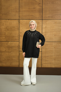 Yaka Taş Detay Tunik Siyah